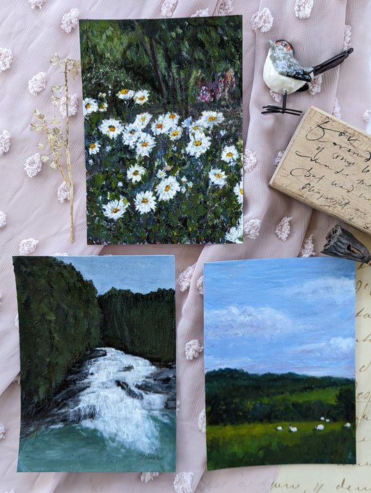 Do you wonder what 'pastoral' means in regards to artwork? For me, it's calming landscapes that are focusing on quiet living, moments of rest, peace, and room to have some margins in your life. I created this collection from a few of the places my family has lived and visited. You will find peaceful scenes from Tennessee, North Carolina, Kentucky, Hawaii, and even Romania. My prayer is you find rest in them and can see why these places are special.