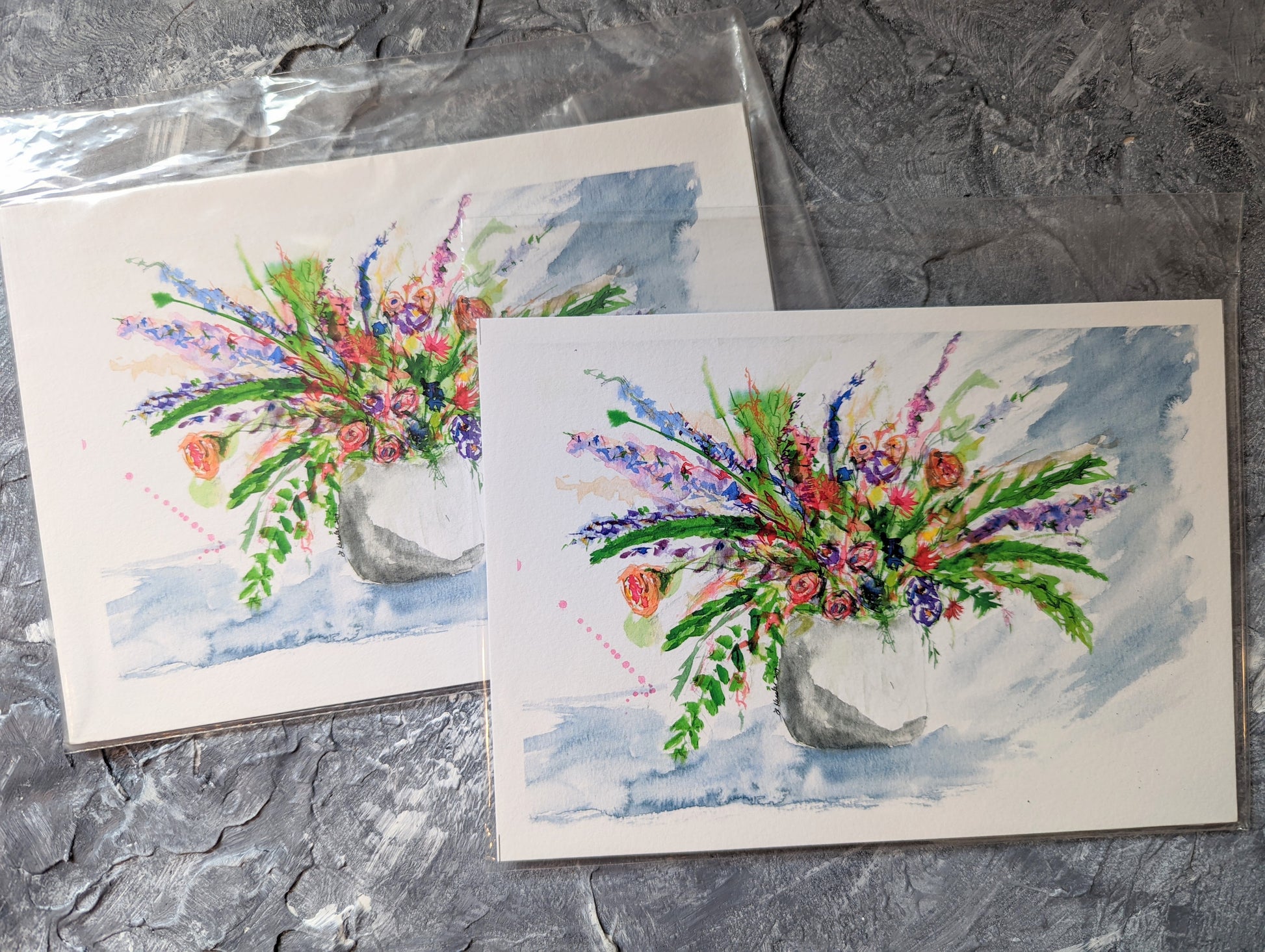 These giclee prints are created on a textured paper that is archival, and acid-free. It is printed using archival pigment inks on a fine art printer. These inks, with proper care, will last for over 100 years.